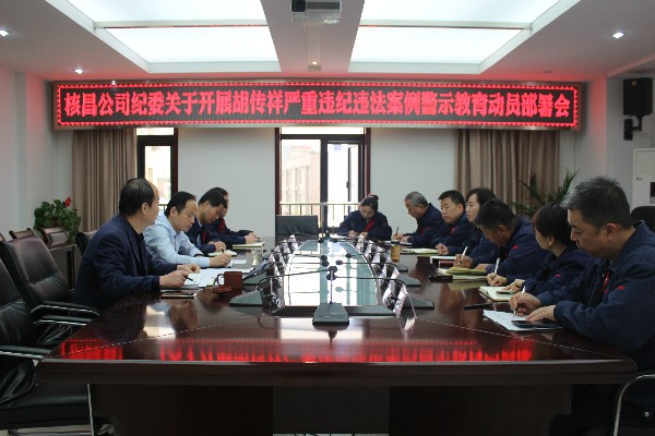 4月30日上午,核昌公司紀(jì)委在公司小會(huì)議室組織公司班子成員、各黨支部書記召開關(guān)于胡傳祥嚴(yán)重違紀(jì)違法案例警示教育動(dòng)員部署會(huì)。會(huì)議由公司紀(jì)委書記梁英平主持。首先,梁書記對集團(tuán)公...