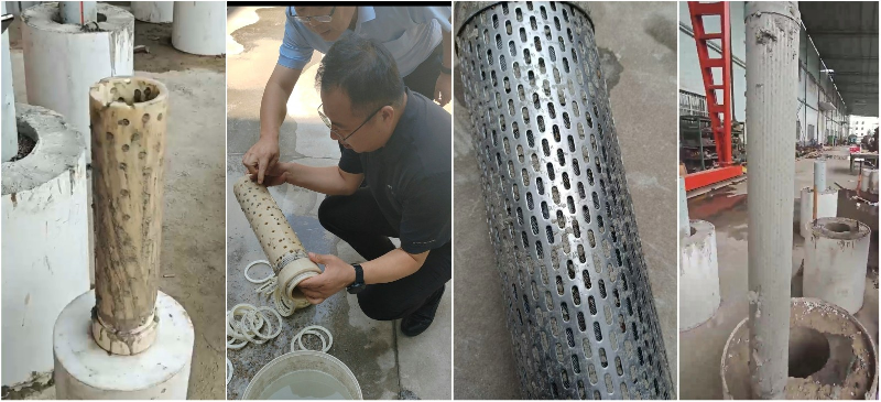 在西安交大電氣學(xué)院實驗室,鄒海峰首先參觀了可控沖擊波項目實驗,張琳詳細(xì)匯報了項目進(jìn)展以及取得的階段性關(guān)鍵成果:該技術(shù)可精準(zhǔn)作用于目標(biāo)區(qū)域,成功使模擬砂巖鈾礦靶塊產(chǎn)生裂隙,且能在保障過濾器完好的情況下實現(xiàn)有效解堵,達(dá)到“解堵增隙”的試驗預(yù)期。鄒海峰現(xiàn)場觀摩了PVC和金屬過濾器靶塊的實驗過程,通過查看可控沖擊波作用后的過濾器和靶塊前后對比情況,充分肯定了該技術(shù)的解堵增隙效果。