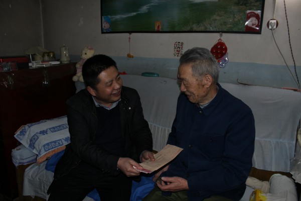 2017年1月24日下午,在新春佳節來臨之際,核昌公司副總經理李偉,紀委副書記、黨群工作部部長王立君代表黨委書記、董事長王超宏,帶領相關負責人員在二一零小區走訪慰問抗美援朝老戰士劉興山、宋景文、劉傳喜、楊文起,給他們帶去了在陜西省國資委申請的新春慰問金,并向他們表達了核昌公司黨委的關懷和問候。