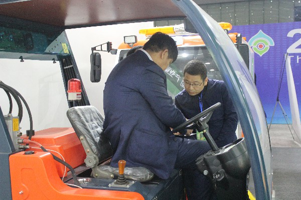 核昌公司展位的精心布置和出色的產品設計吸引了廣大參展客商駐足觀看,客商們不但可以觀看清掃車實地操作視頻,還可以通過與工作人員互動去了解產品性能,展會現場氣氛十分熱烈