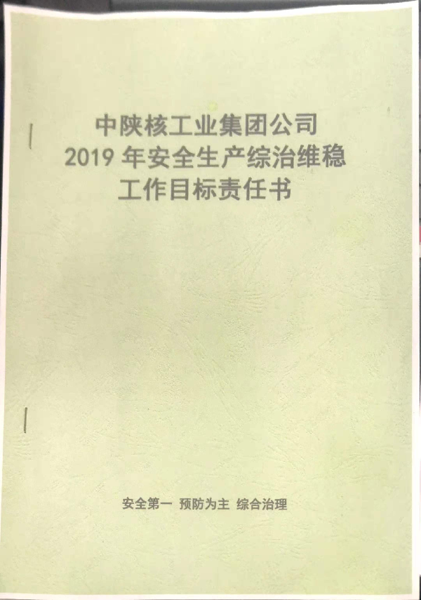 中陜核工業(yè)集團公司2019年安全生產(chǎn)綜治維穩(wěn)工作目標(biāo)責(zé)任書